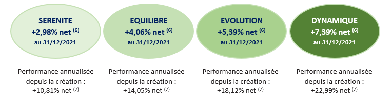 Les mandats de gestion proposés au sein de Préfon-Vie Responsable affichent également d’excellentes performances (5) depuis leur création et se maintiennent en 2021.
