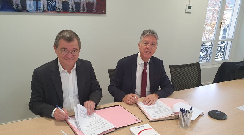 Signature du partenariat entre M.Christian Carrega (Préfon) et M. Olivier Ducrocq (ANDCDG) le 15/10/2025